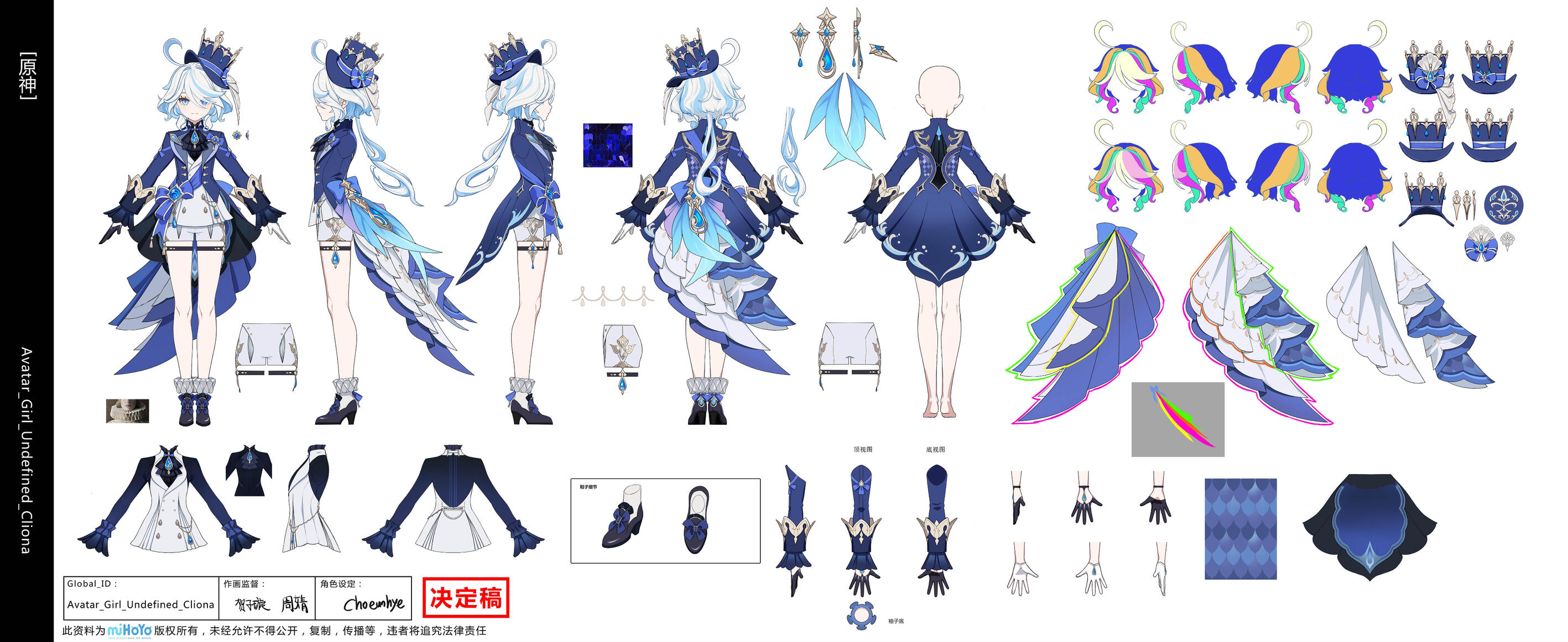 -Khách hàng phải công cấp reference thật đầy đủ chi tiết, trực quan và rõ ràng, kèm theo những thông tin cần thiết. Thiếu ref sẽ khiến cho quá trình làm comm có thể bị chậm lại, và sẽ dẫn tới phụ phí.-Yêu cầu bắt buộc đối với reference nhân vật của các bạn: Phải có đầy đủ các góc Trước - Sau - Trái - Phải của nhân vật. Trang phục nhân vật cũng phải được tách lớp và có ref chi tiết. Mình cũng cần các bạn phải cung cấp cho mình tranh character card của OC các bạn. Tranh ref fullbody thì không cần thiết phải quá sát với style game của Hoyoverse, nhưng riêng character card thì style phải thật sát với style game để mình sử dụng làm ref để edit mặt cho OC của các bạn. Tất cả những chi tiết hoa văn trên nhân vật cũng cần phải được tách riêng ra định dạng png trong suốt.*MÌNH SẼ KHÔNG LÀM FACE EDIT CHO MODEL STYLE HONKAI NGOẠI TRỪ TEXTURE.-Hãy đảm bảo là reference của OC các bạn phải thật LOGIC. 2D và 3D rất khác nhau. 2D không giới hạn các bạn khỏi việc vẽ thế nào tùy ý bất kể là nó có phi logic đến đâu, nhưng 3D thì khác. Bạn phải đảm bảo là design OC của các bạn có tính khả thi để làm thành model 3D, và các bạn sẽ phải chấp nhận việc model 3D không thể giống ref 2D 100%.-MÌNH KHÔNG LÀM COMM MOD. Mình chỉ làm việc với MMD thôi, đây là comm MMD model. Mình sẽ chỉ chịu trách nhiệm với những phần liên quan tới MMD như là dựng hình, vẽ chất liệu và rig tổng thể. Model sau khi hoàn thành vẫn có thể sử dụng để mod và dùng ở phần mềm khác không phải là MMD, nhưng tất cả những gì không phải MMD, mình sẽ không chịu trách nhiệm.-Nếu bạn muốn model được mod vào game, mình sẽ chuyển hướng bạn qua bạn h-4ru để bàn thêm về modding.-Khoản MMD physics cho model của các bạn sẽ được làm bởi h-4ru-Các bạn không được phép sử dụng comm đã hoàn thành cho nội dung NSFW hay mục đích thương mại-Ảnh sản phẩm comm hoàn thiện sẽ được mình đăng trưng bày lên Deviantart, Twitter hoặc Ko-Fi của mình. Nếu các bạn không muốn mình đăng công khai hình ảnh comm của các bạn sau khi hoàn thiện thì hãy cho mình biết luôn khi các bạn sẵn sàng đặt comm. Phí private sẽ là 30% giá comm.